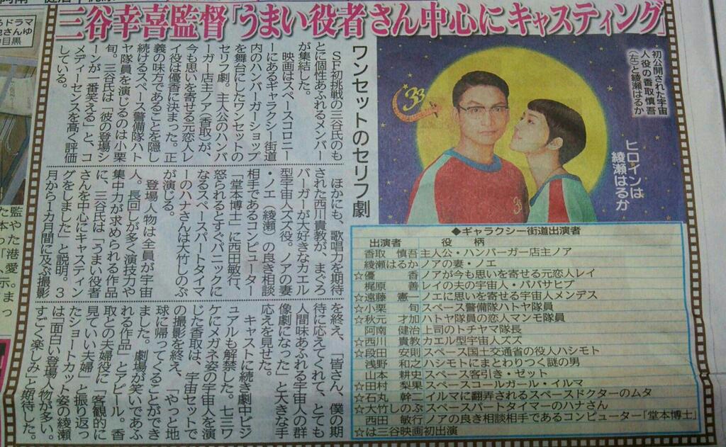 見せ場は遠藤憲一の出産シーン!三谷幸喜新作で香取、綾瀬、小栗らが宇宙人に - 映画ナタリー