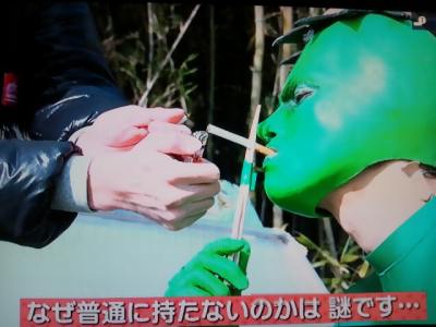 ニノちゃんがバッタを捕まえて皆で遊んでる様子で、河童さんがバッタの真似してるとこ。ちなみに城田くんは、ギャーーースカ叫んで逃げ回ってます。どうやら虫が怖いみたい。